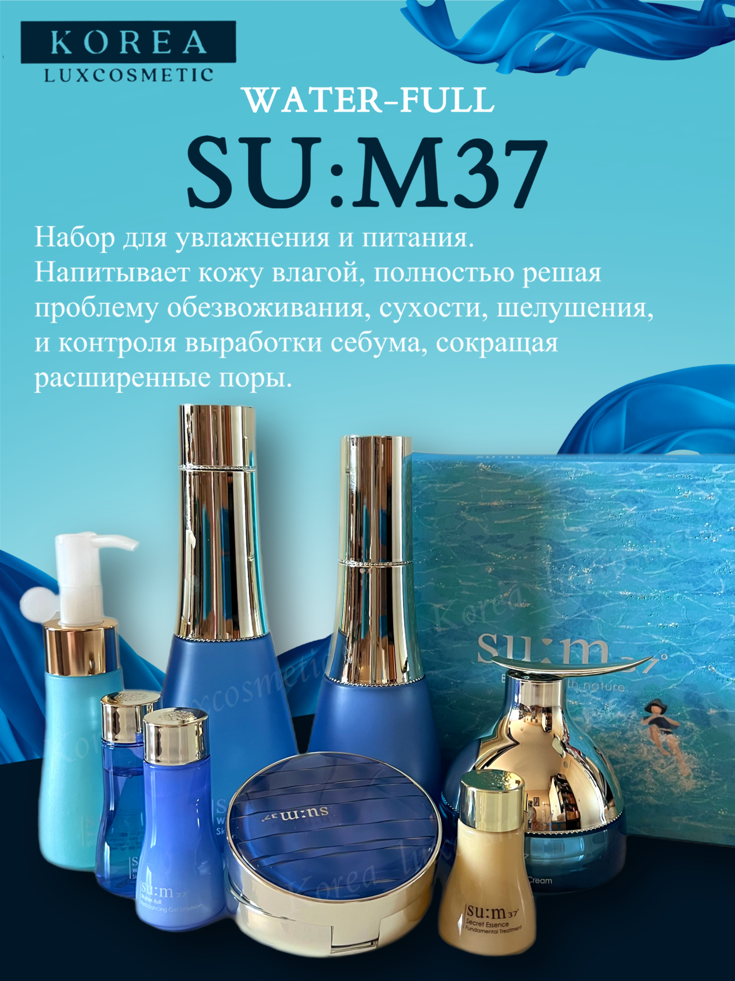 SU:M37 Набор для увлажнения и питания кожи лица. WATER-FULL 3psc Breathe with nature. Для зрелой и возрастной кожи. Великолепное наполнение от производителя. интересное: