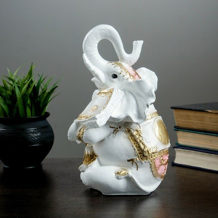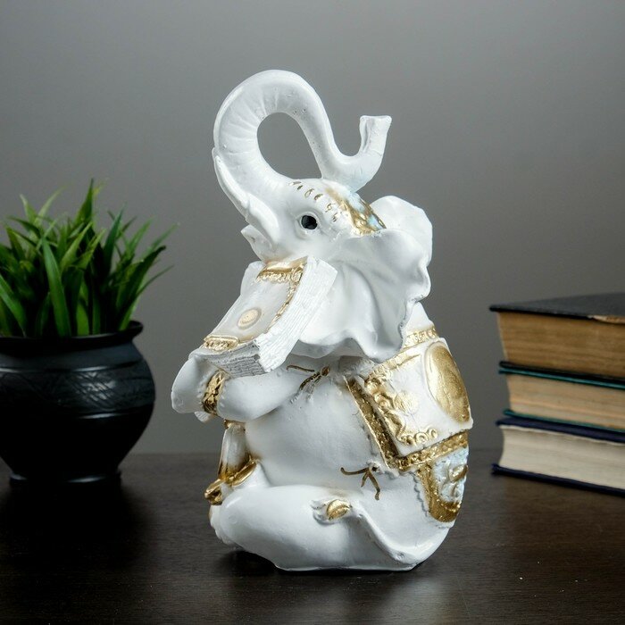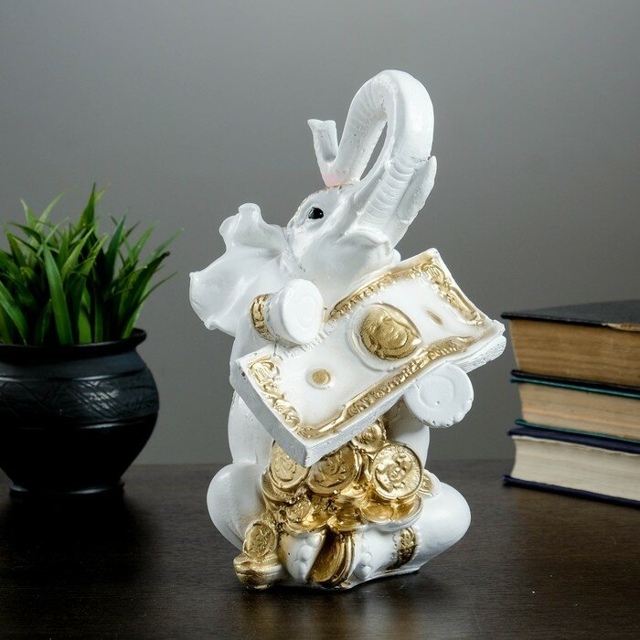 Купить Хорошие сувениры Копилка "Слон с деньгой" бело-золотой, 15х13х26см