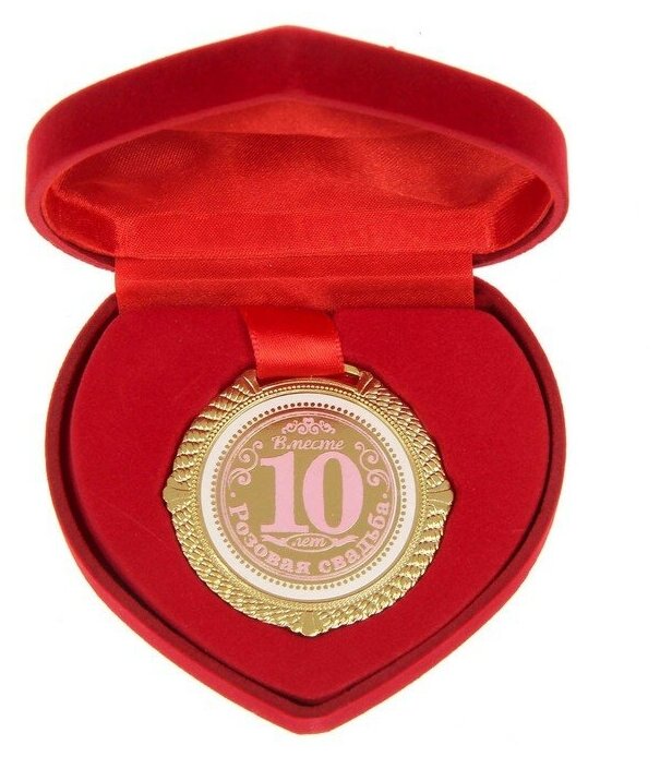 Медаль в бархатной коробке "Розовая свадьба. 10 лет вместе", диам. 5 см