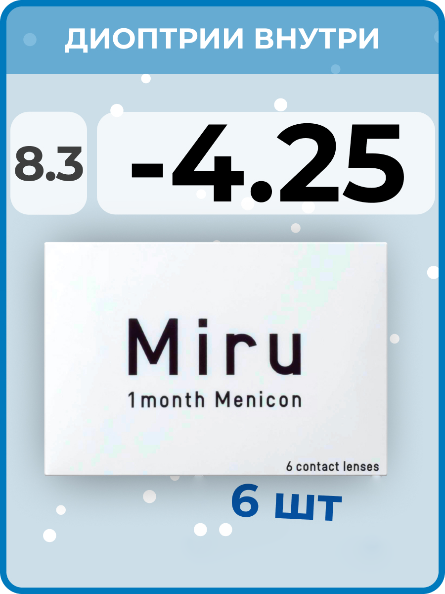 Контактные линзы на месяц Miru 1 month, 8.3, 6 шт. -4.25