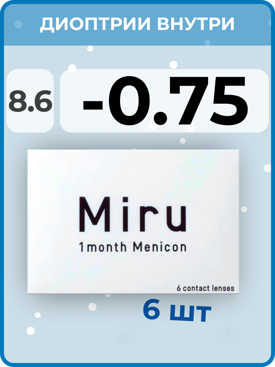Контактные линзы на месяц Miru 1 month, 8.6, 6 шт. -0.75