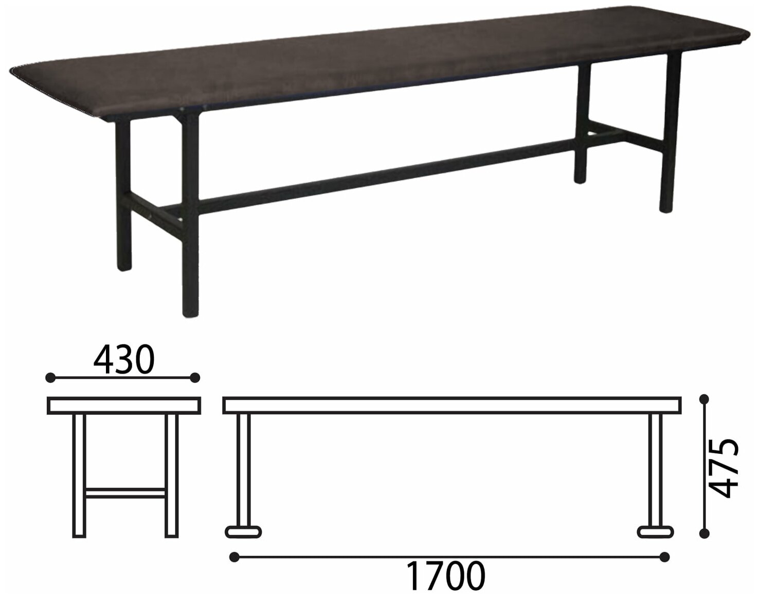 Банкетка без спинки «Берта», 1700×430×475 мм, усиленная, черный каркас, кожзаменитель черный, разборная