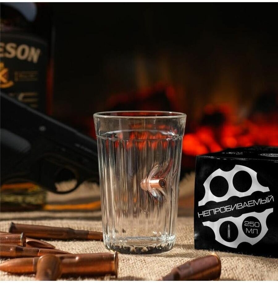 Стакан подарочный, бокал с пулей для пива "Непробиваемый Характер" граненый, 250 мл интересное: