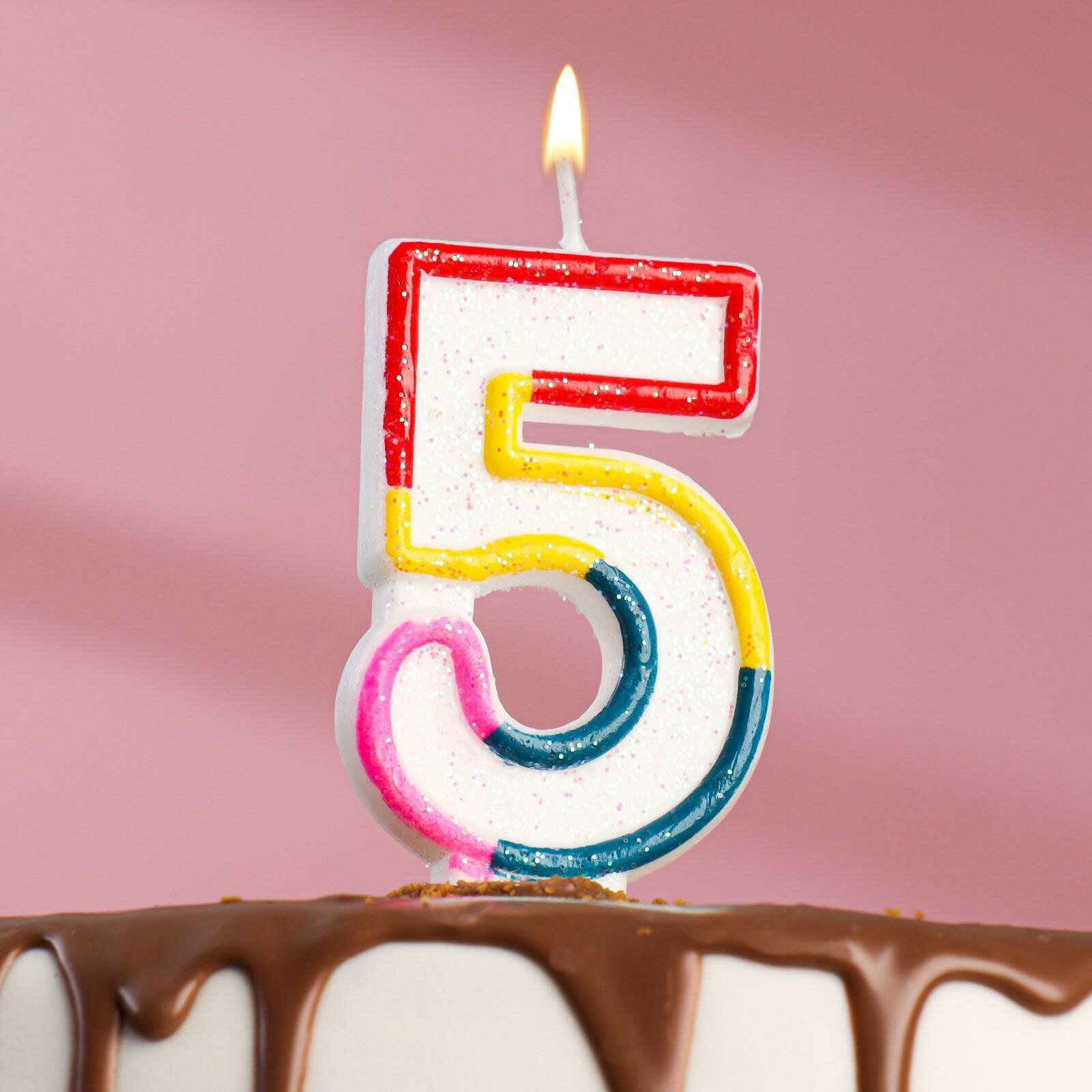 Купить Свеча для торта с блестками «Блестящий ободок», цифра "5" , 7 см