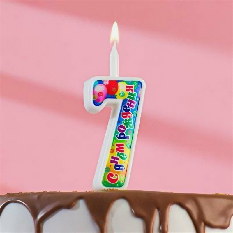 Свеча Цифра, 7 С Днем Рождения, 12 см, 1 шт.