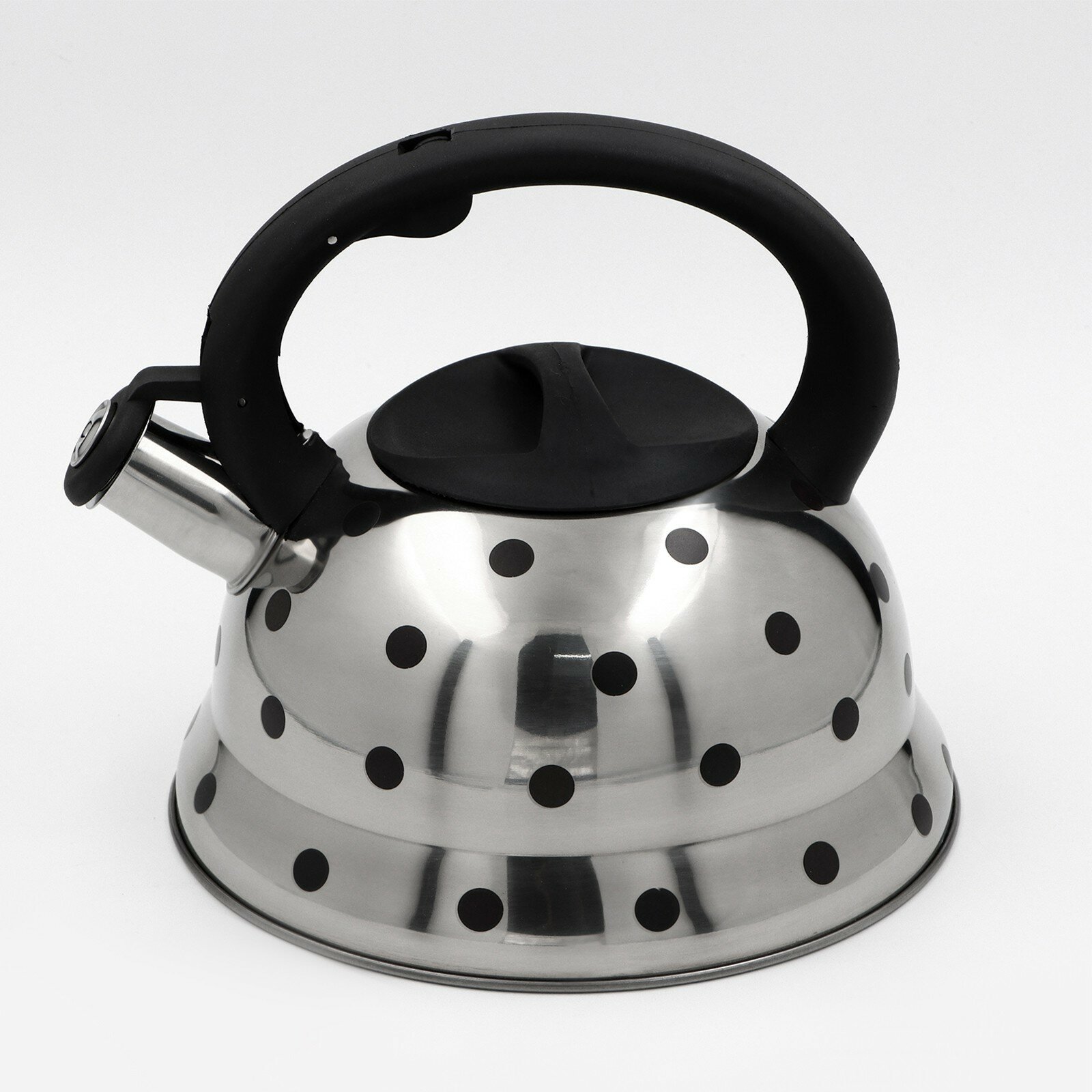 Чайник со свистком из нержавеющей стали Доляна «Горошек», 2,8 л, цвет хромированный