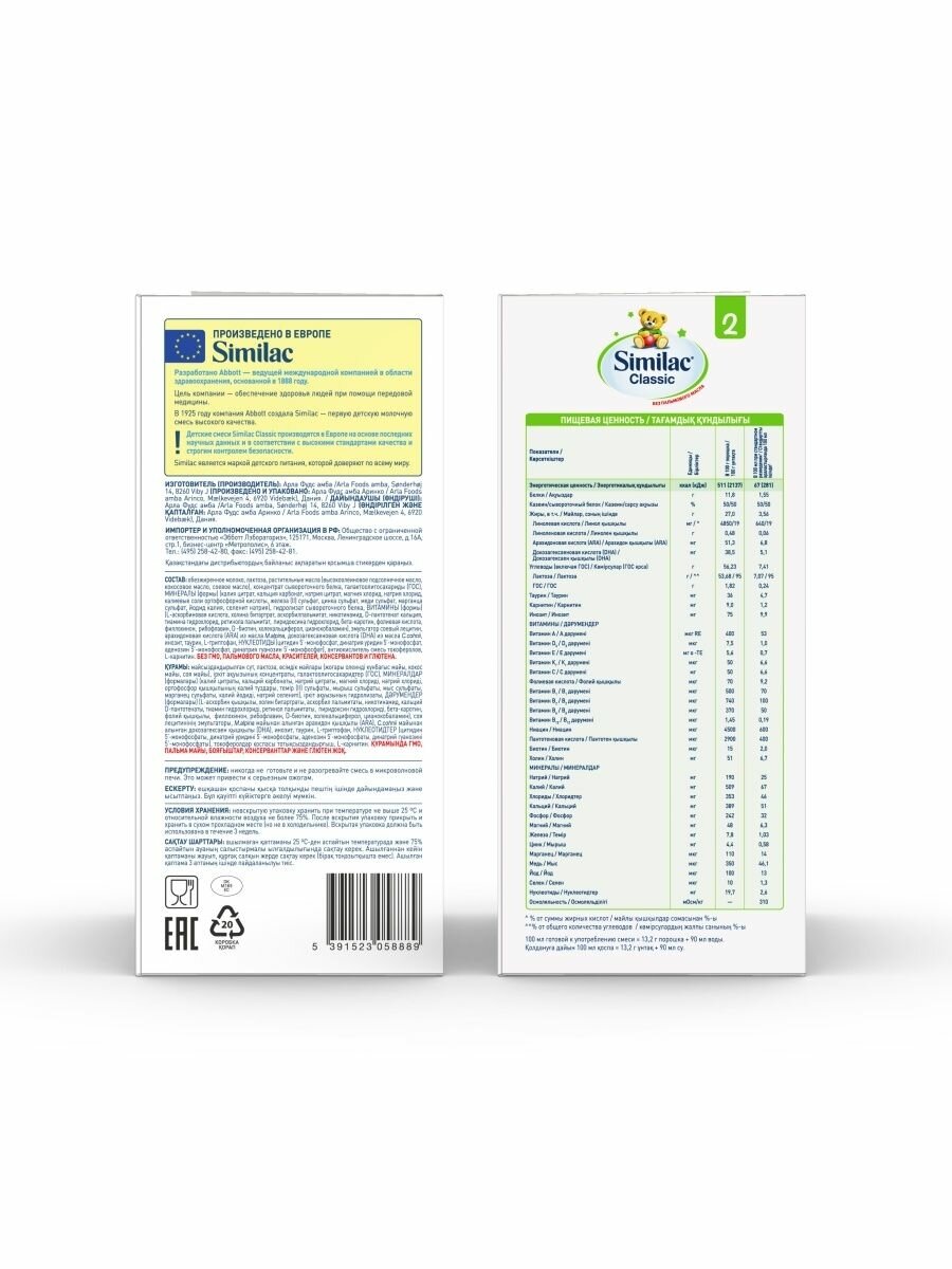 Смесь Similac Classic 2, от 6 до 12 месяцев, 600 г