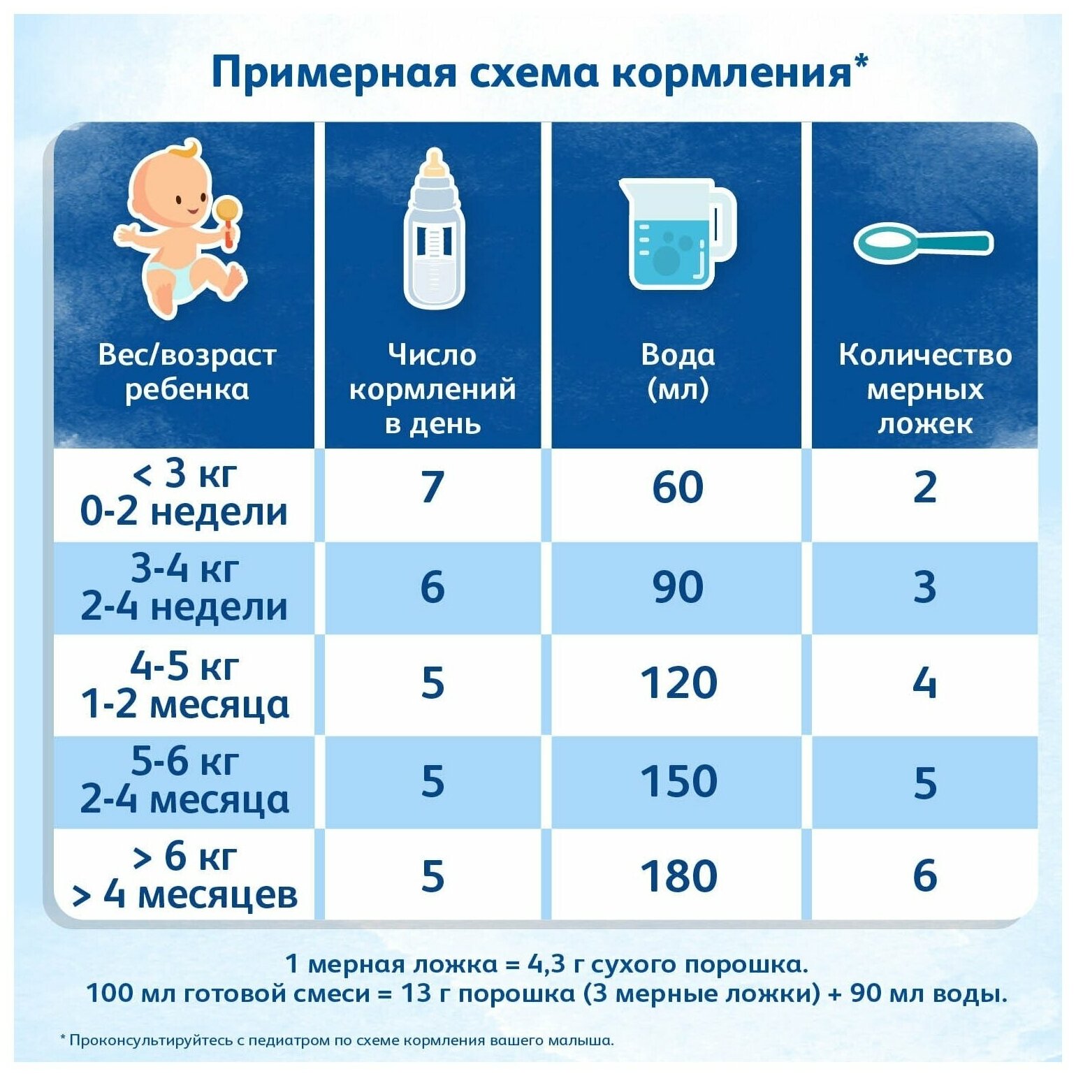 | Плюсы: | Крайне удобно, что ложечка находится на подставке, не нужно копаться в смеси, чтобы её найти. Смесь слегка сладковатая, мы на ней отлично набрали вес в первый месяц, педиатр похвалил |