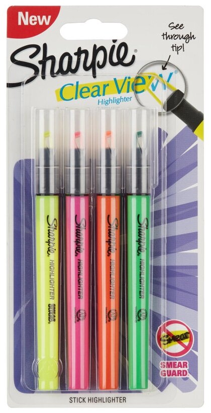 Набор маркеров текстовыделителей SHARPIE Clearview, блистер 4 шт интересное: