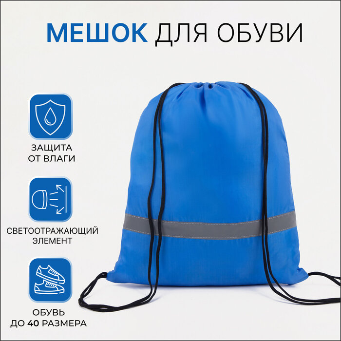 Мешок для обуви на шнурке, светоотражающая полоса, цвет синий