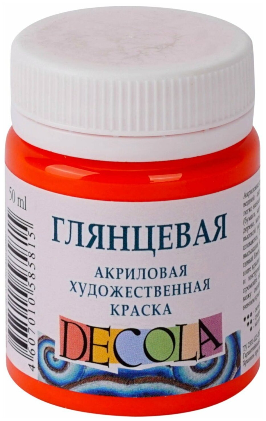 Краска акриловая художественная Decola, 50мл, глянцевая, баночка, оранжевый