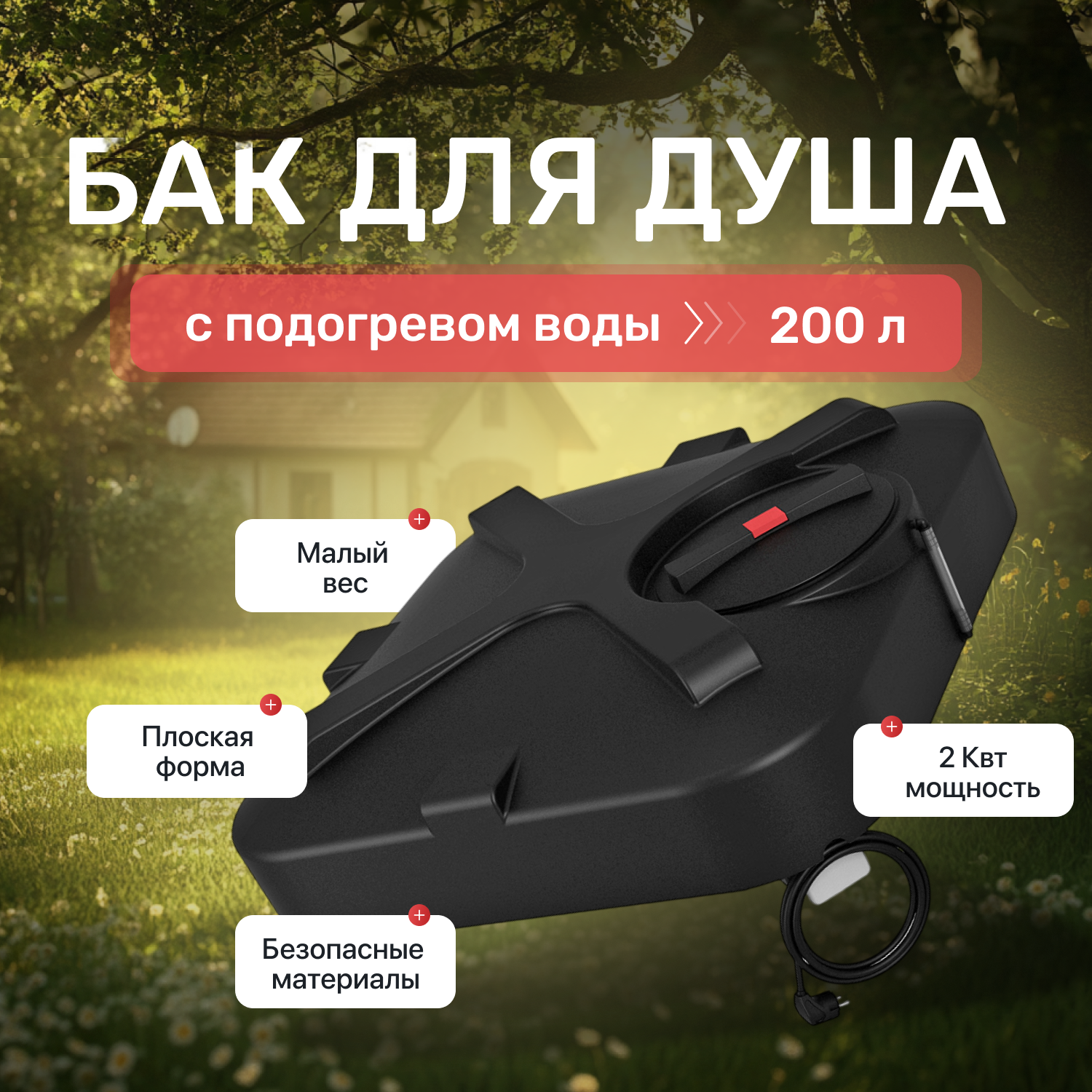 Бак для душа Rostok 200 л с подогревом и лейкой 201.2000.899.1