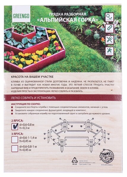 Клумба оцинкованная, 2 яруса, d = 60100 см, высота бортика 30 см, зелёная, Greengo Greengo 1822865 .