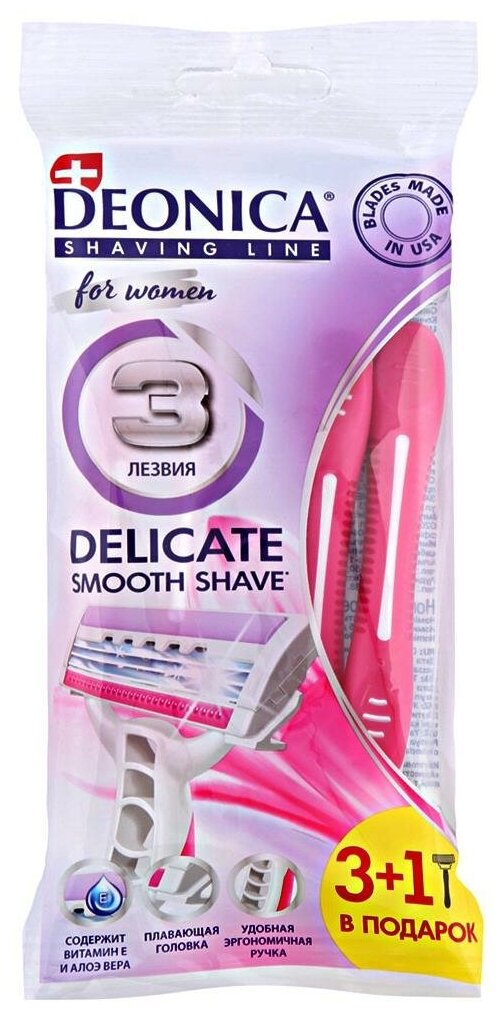 Арнест Одноразовая безопасная бритва Deonica For women 2 лезвия 3+1 в подарок интересное: