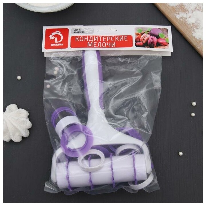 Валик для нарезки теста Доляна Лепота, 12,5?3?19 см, 4 насадки, цвет белый Доляна 114615 .