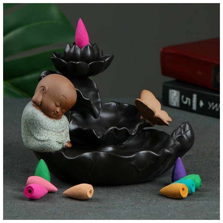 Подставка для благовоний "Бабочка на лотосе" 14х16х12см, с аромаконусами