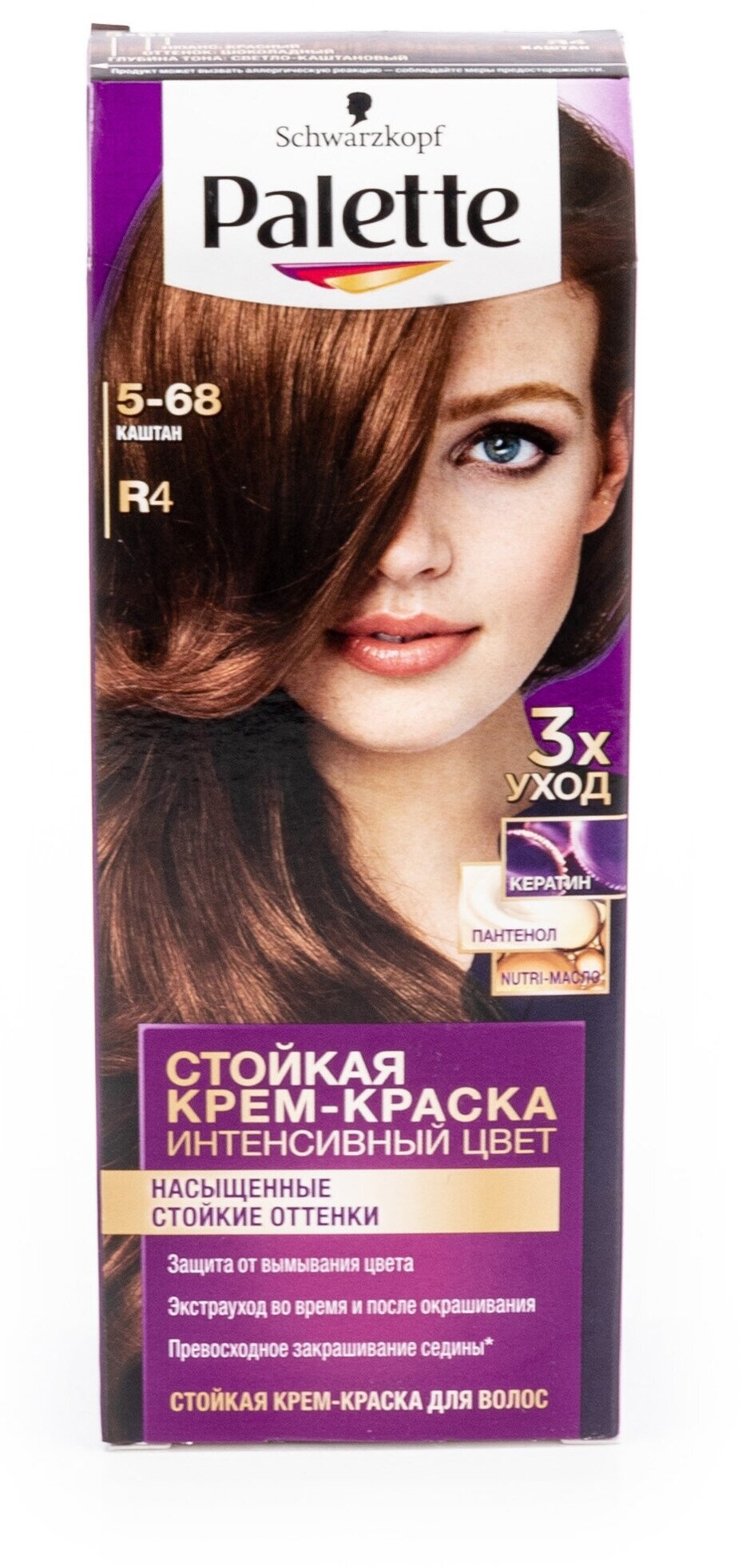 Ниже Вы можете прочитать отзывы на Palette Интенсивный цвет Стойкая крем-краска для волос, R4 5-68 Каштан, ознакомится с подробными характеристиками, посмотреть интересные обзоры и фотографии на Palette Интенсивный цвет Стойкая крем-краска для волос, R4 5-68 Каштан.