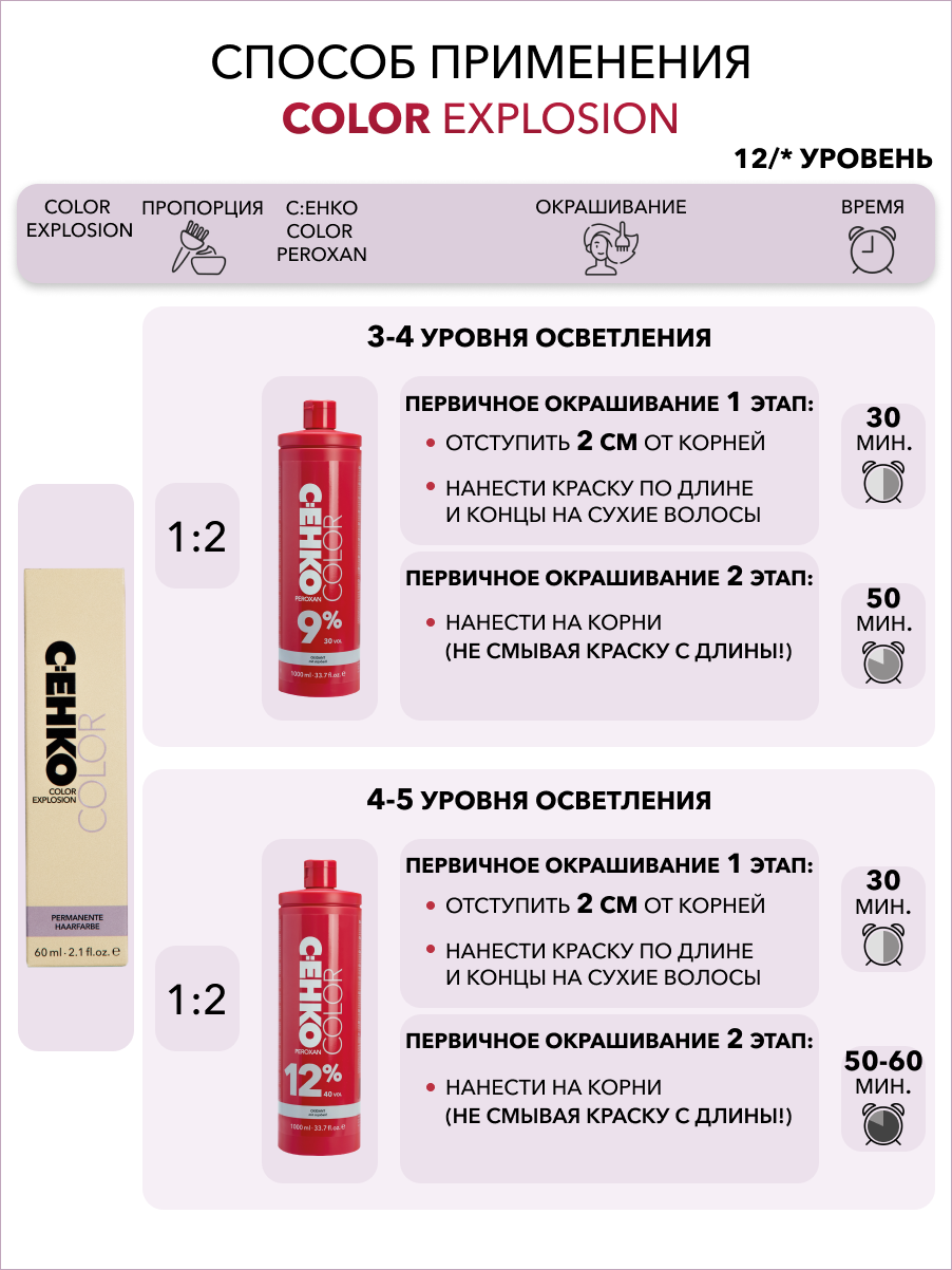 Профессиональная краска для волос 12/82 Фиолетовый пепельный платиновый блондин, осветлитель, для блонда, холодный, стойкая, перманентная, 60 мл, C:EHKO COLOR EXPLOSION