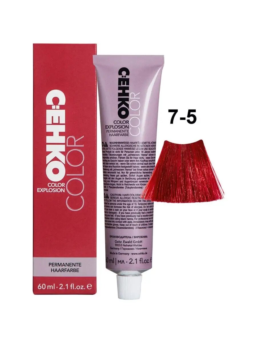 Профессиональная краска для волос 7/75 Светло-ореховый, коричневый, шоколад, стойкая, перманентная, для седых волос, 60 мл, C:EHKO COLOR EXPLOSION