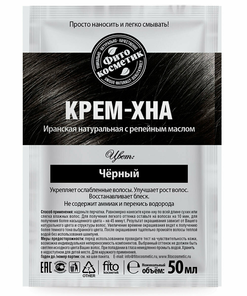 Крем-хна для волос Фитокосметик, питание и восстановление, цвет: черный, 50мл