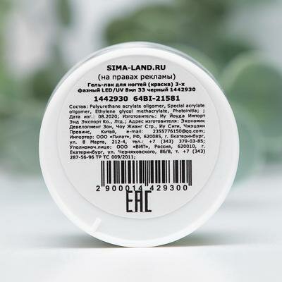 Гель-лак для ногтей (краска) 3-х фазный LED/UV 8мл 33 черный 1442930