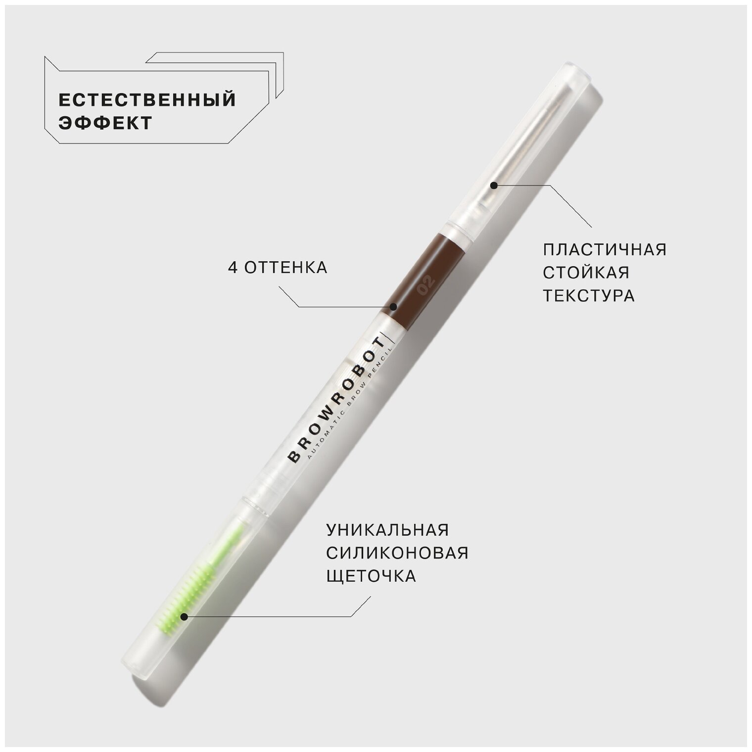 Купить Карандаш для бровей INFLUENCE BEAUTY BROW ROBOT автоматический, ультратонкий, тон 02: русый, 0,1г
