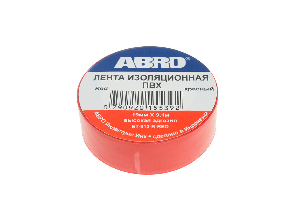 ABRO ET-912-R-RED Лента изоляционная 18 мм .x9,1 м. толщина 0,12 мм . ПВХ красная от -3C до +80C ABRO ET-912-R-RED