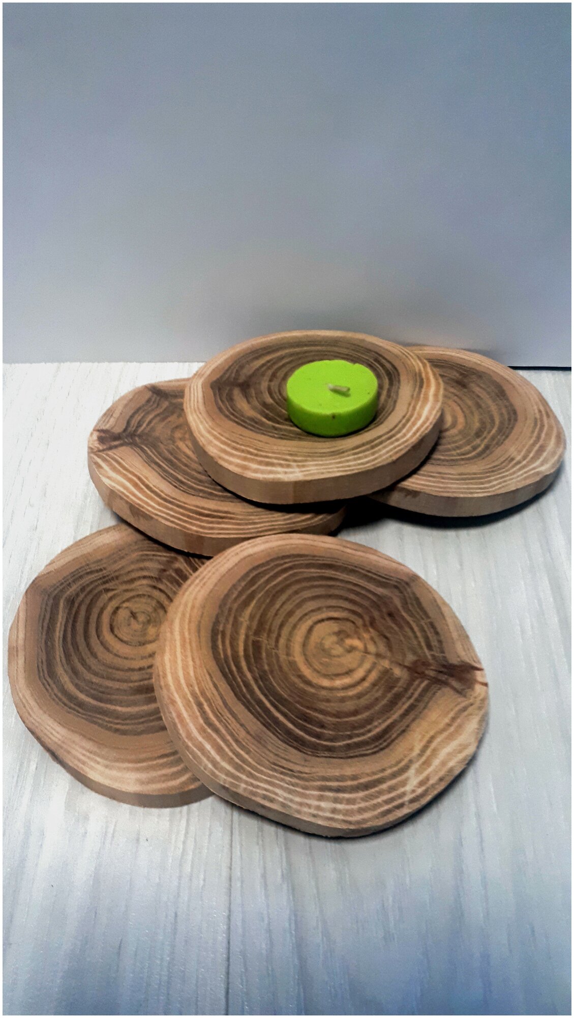 Деревянные заготовки 5шт Срез Канадского дуба без корыД 11-12 см , толщина 1 см набор 5шт. шлифованные
