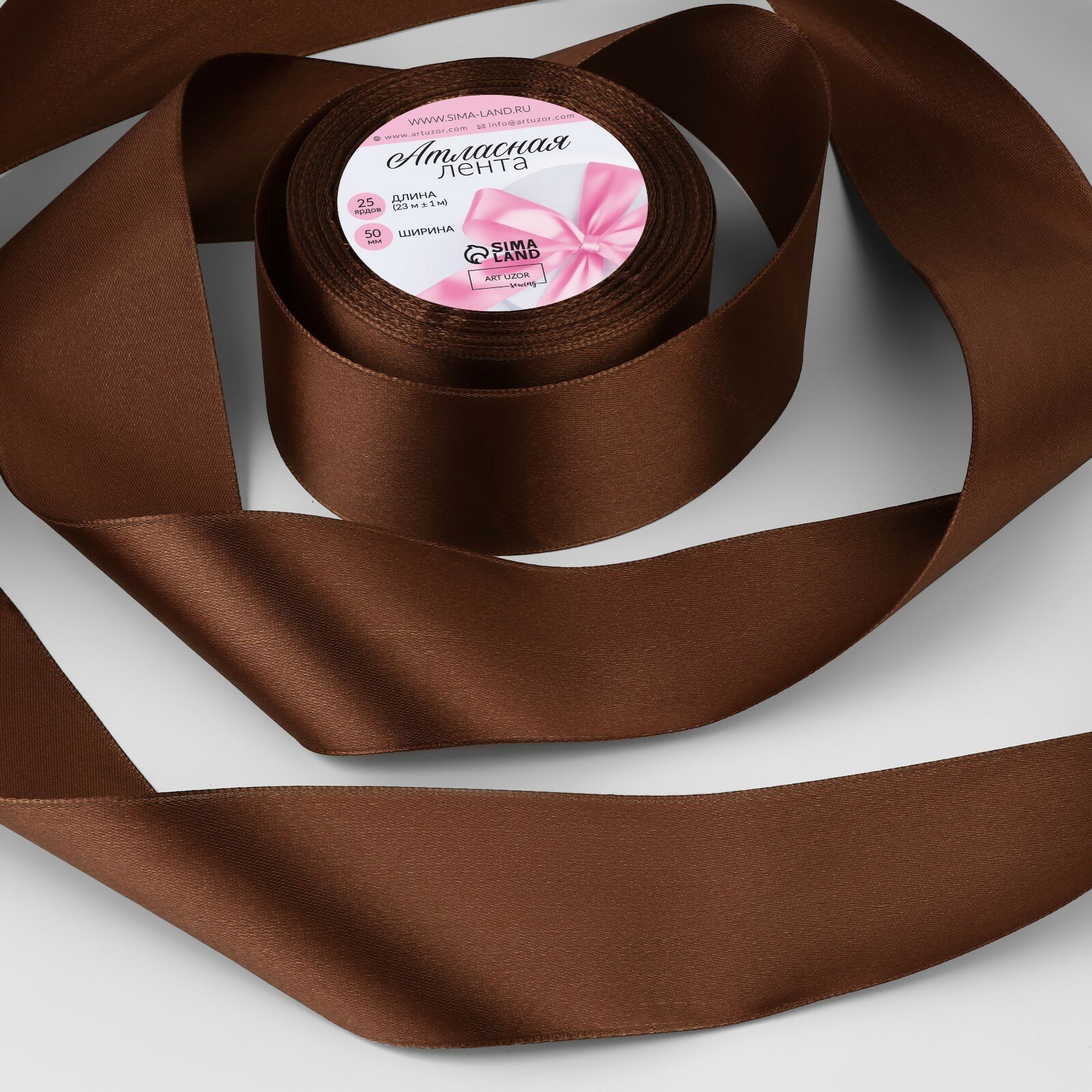 Арт Узор Лента атласная, 50 мм × 23 ± 1 м, цвет тёмно-коричневый №74