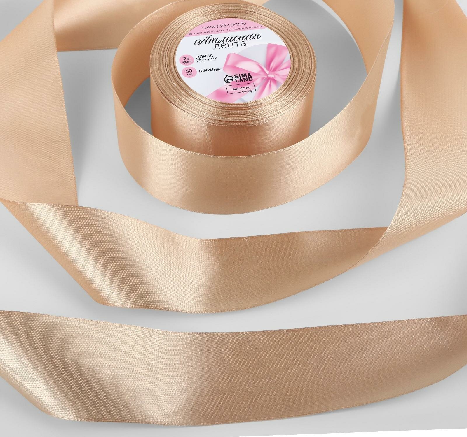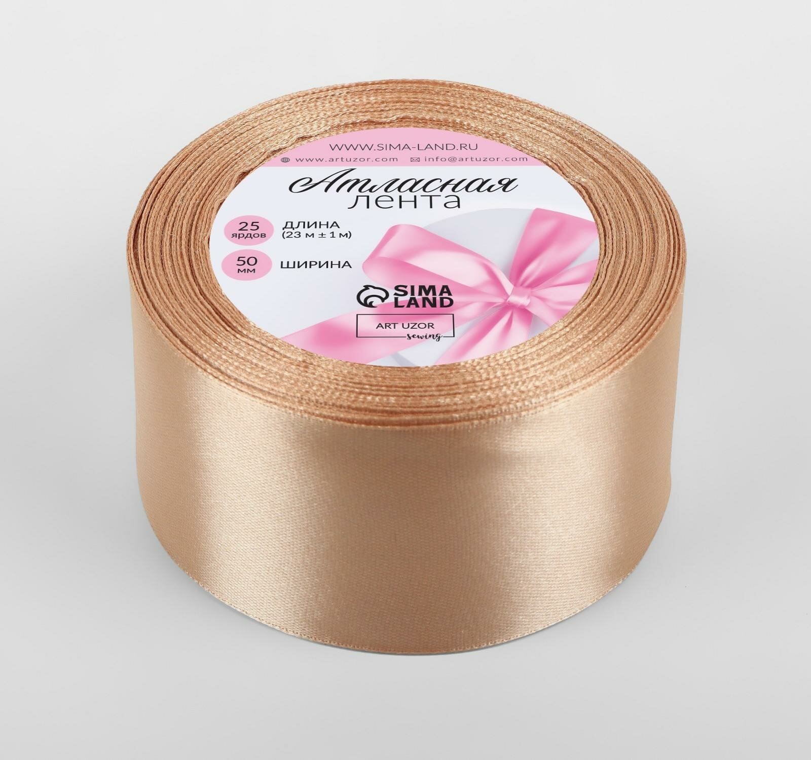 Арт Узор Лента атласная, 50 мм × 23 ± 1 м, цвет шампань №132