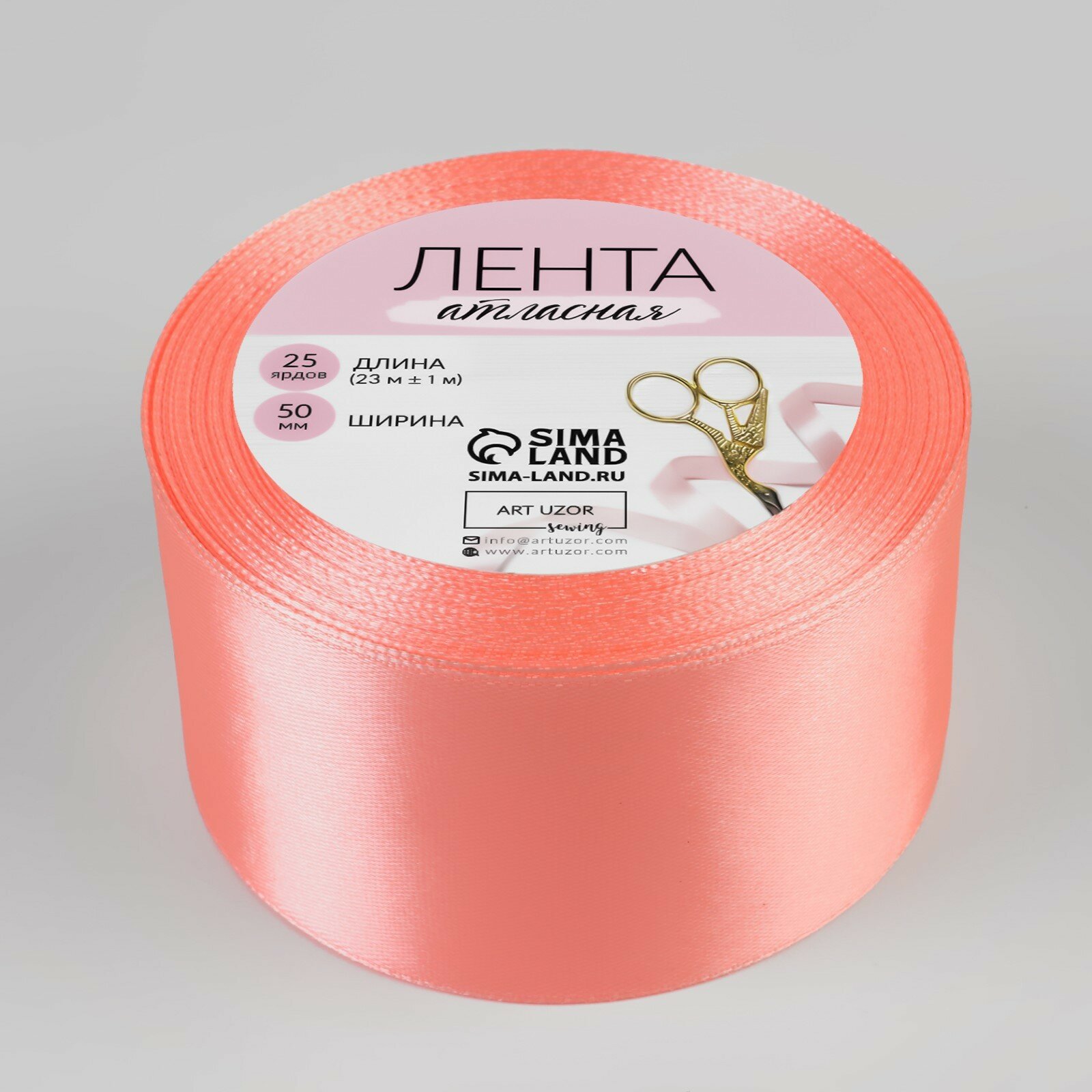 Арт Узор Лента атласная, 50 мм × 23 ± 1 м, цвет лососёвый №163