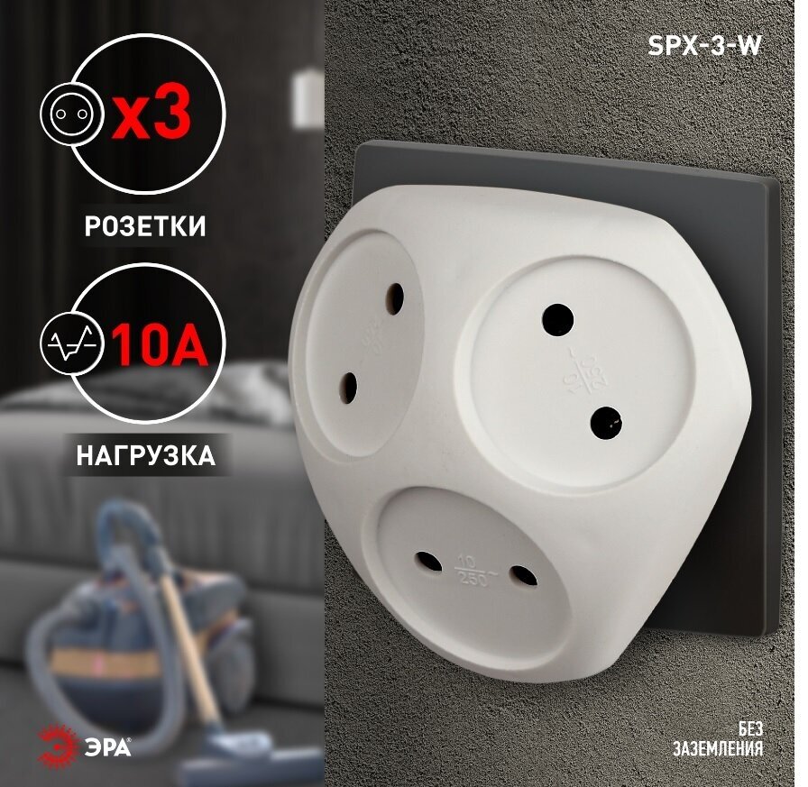 Разветвитель 3-м без заземл. 10А IP20 SPx-3-W бел. Эра Б0053481 интересное: