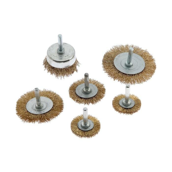 Купить Тундра Набор щеток металлических для дрели тундра, плоские 40-50-65-75-100 мм, чашка 50 мм, 6 шт.