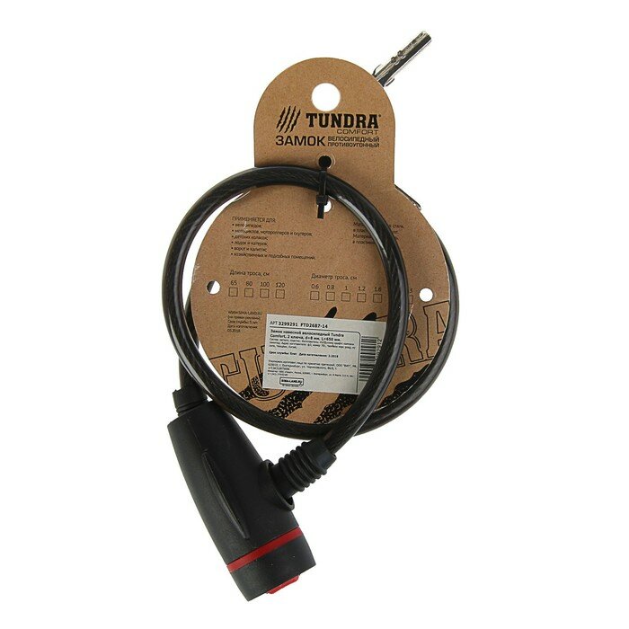 Замок велосипедный Tundra навесной, 8х650 мм, перфорированный ключ интересное: