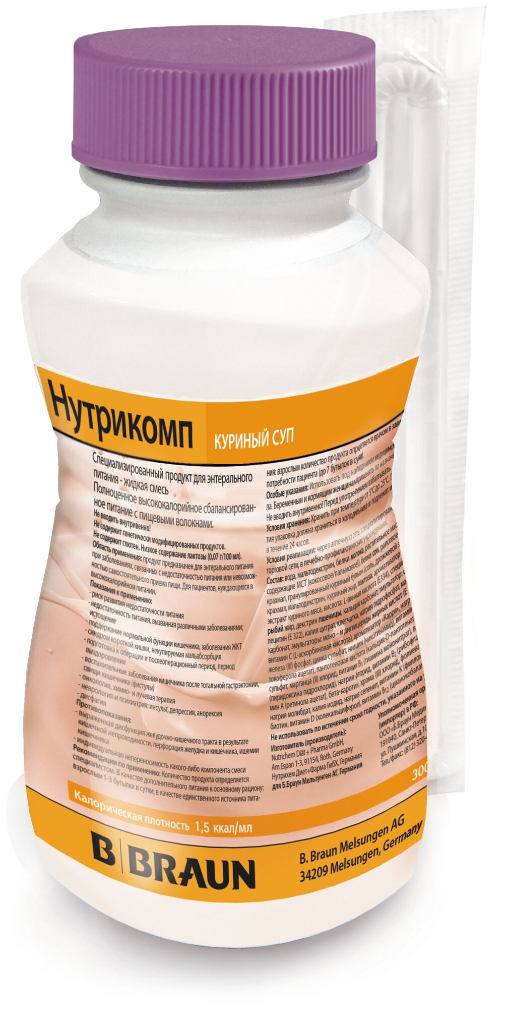 Нутрикомп, суп куриный, в пластиковой бутылке - жидкая смесь для энтерального питания, 200 мл (3 шт.)