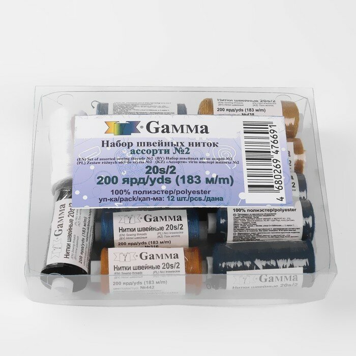 Купить Нитки джинсовые 20S/2, 183 м, №2, 12 шт, цвет разноцветный./В упаковке шт: 1
