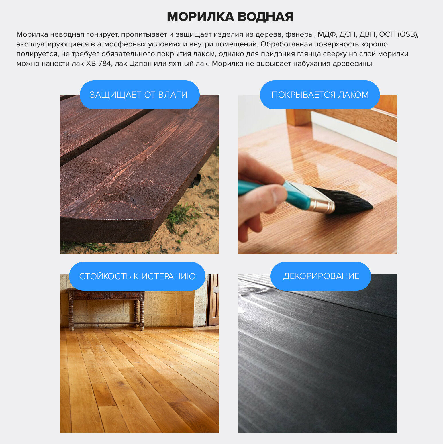 Морилка Неводная Новбытхим 0.5л Эбеновое Дерево для Тонирования, Пропитки и Защиты Деревянных Изделий.