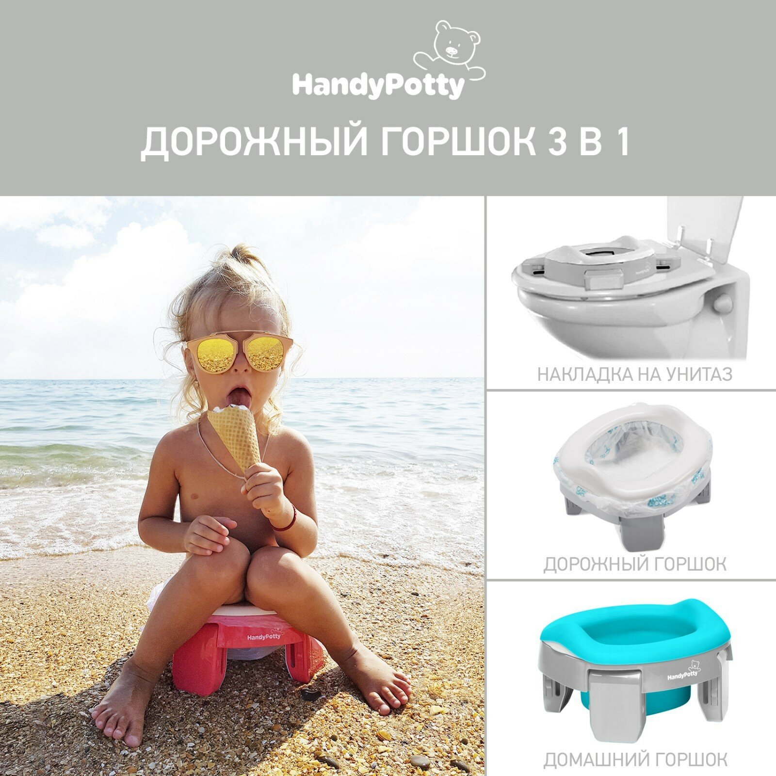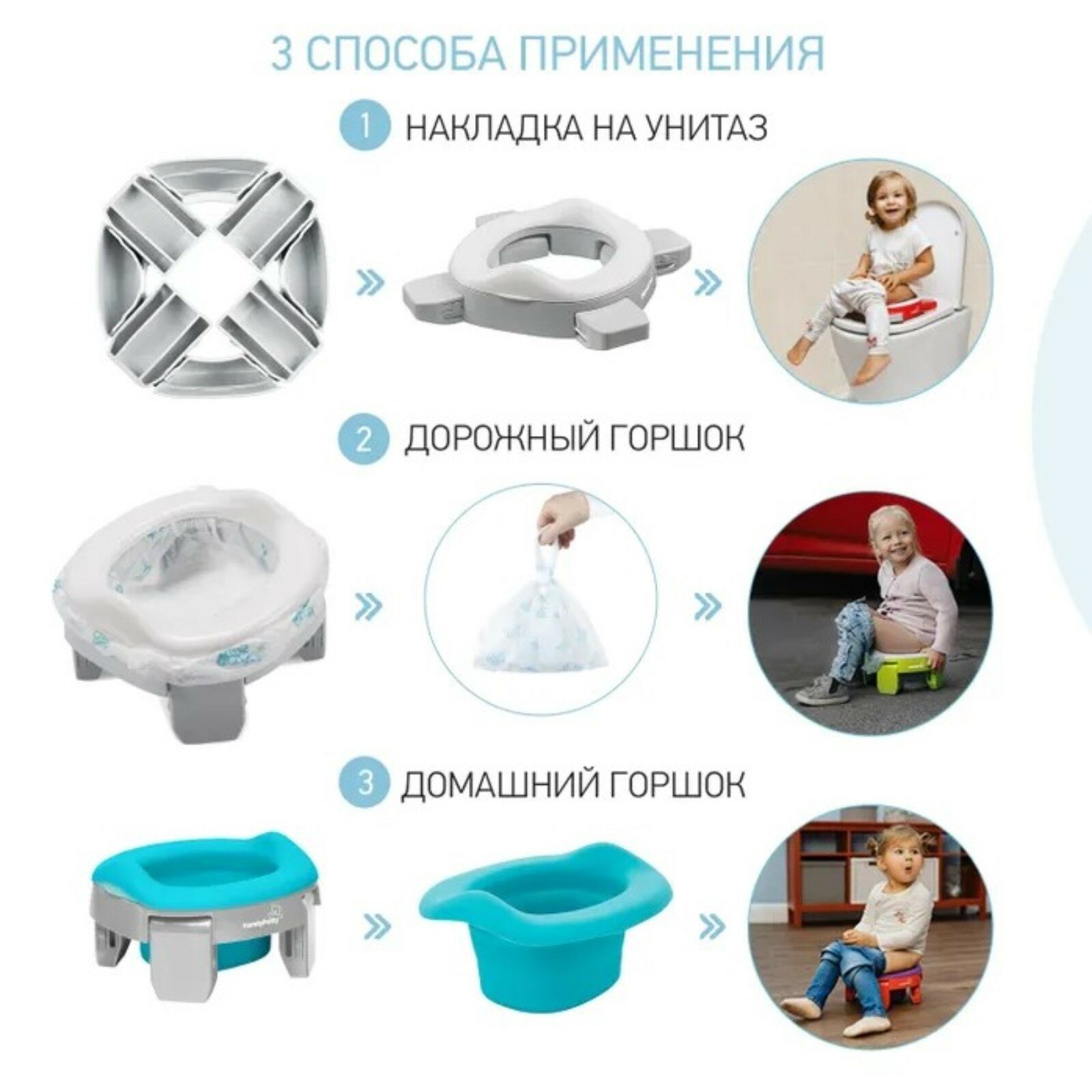 СохранитьГоршок дорожный складной с многоразовой вкладкой HandyPotty 3 в 1 от ROXY-KIDS, цвет серый/мятный интересное: