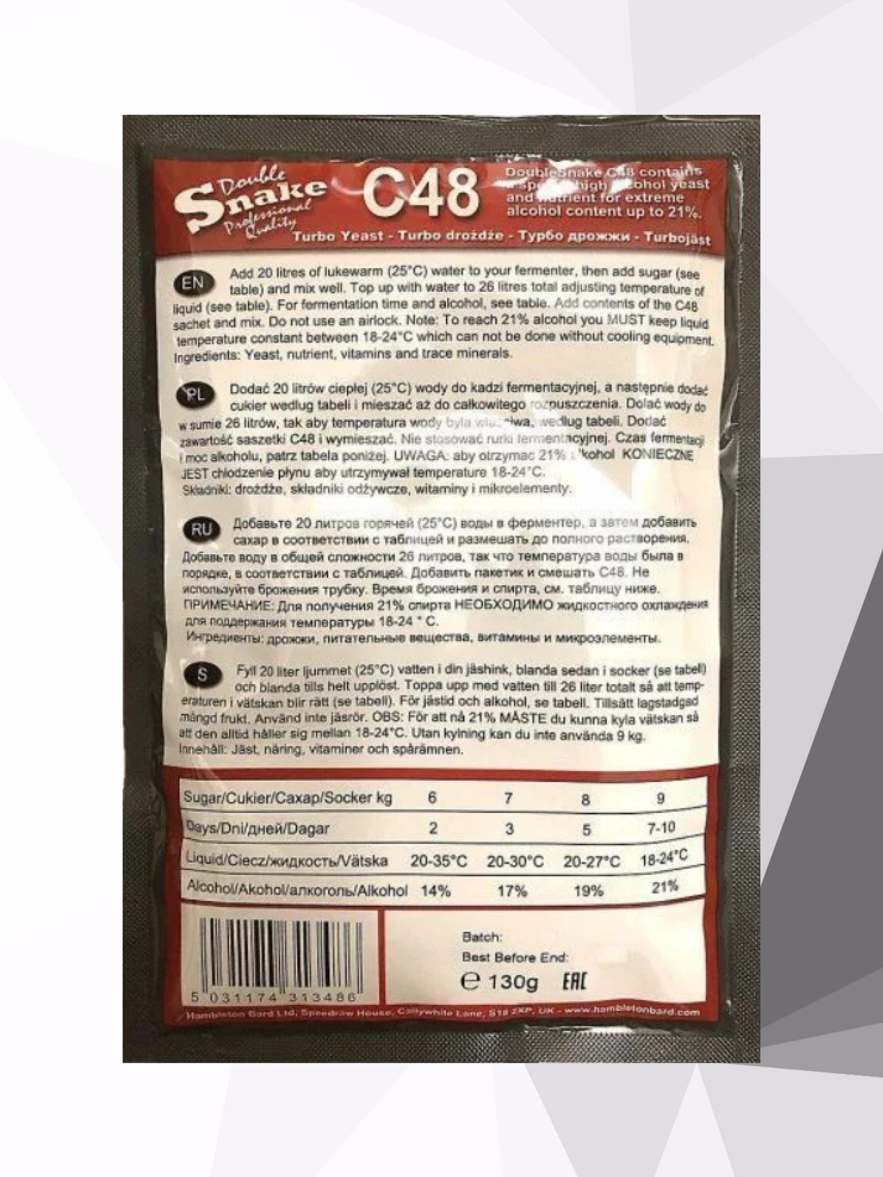 Турбо дрожжи Double Snake C48, 130 гр (Дабл Снейк С48 спиртовые, 5 пачек)