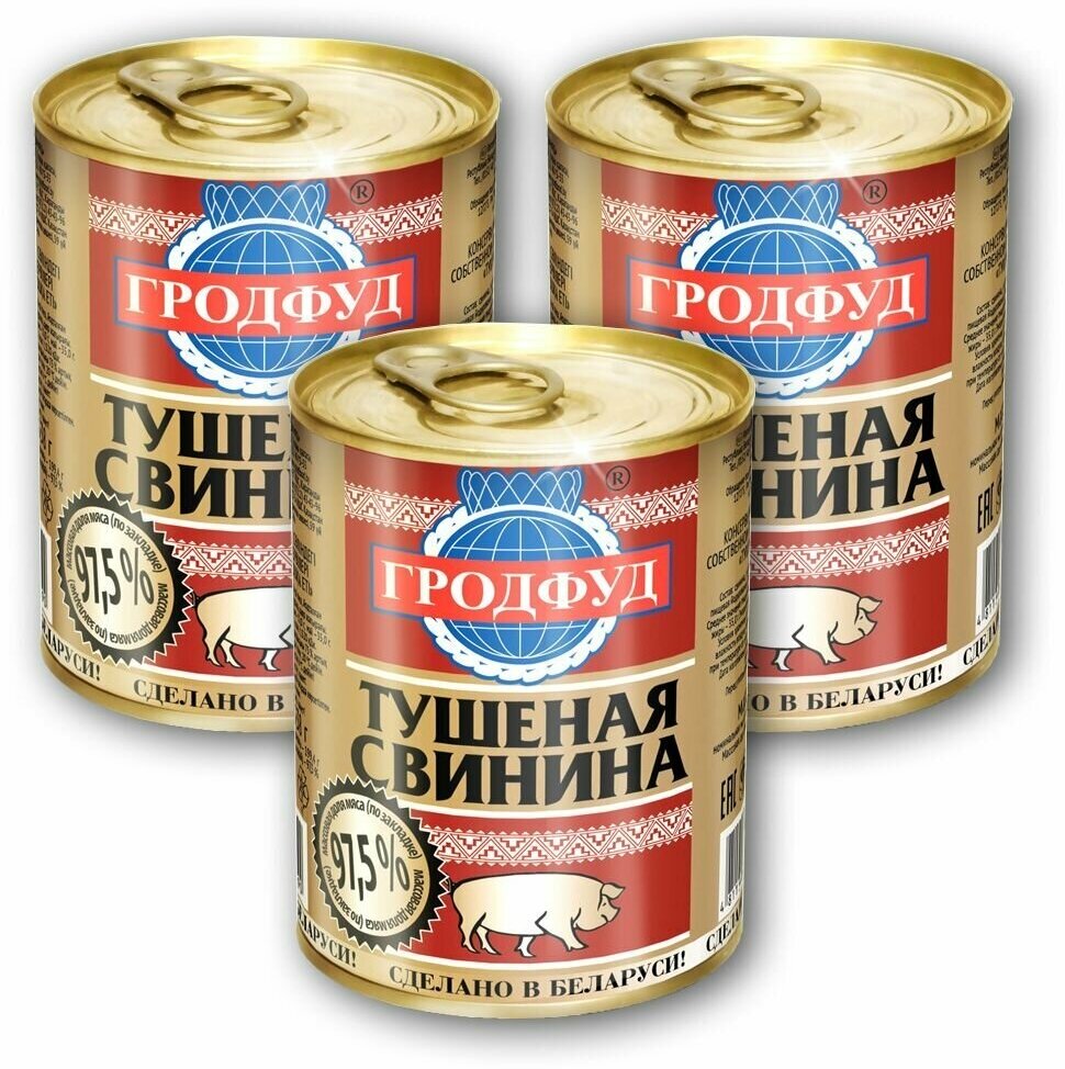 Свинина тушеная ТМ "Гродфуд" Беларусь (97,5% мяса), 338 гр. Набор из 3 банок