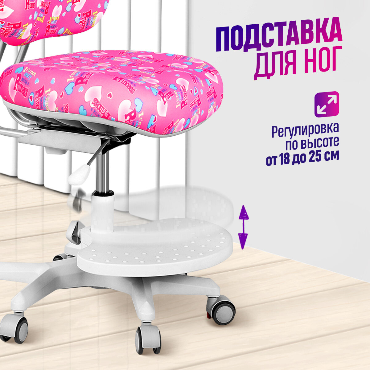 | Минусы: | Подставка под ноги по хорошему должна быть длиннее, чтобы ребёнок не под себя ноги подворачивал а опускал их ровно вниз. |