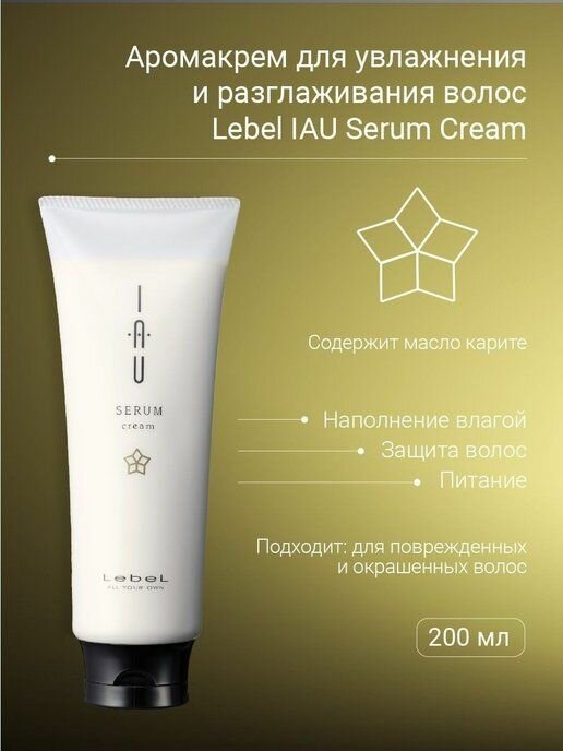 Lebel IAU Serum Cream Аромакрем для увлажнения и разглаживания волос, 200 мл