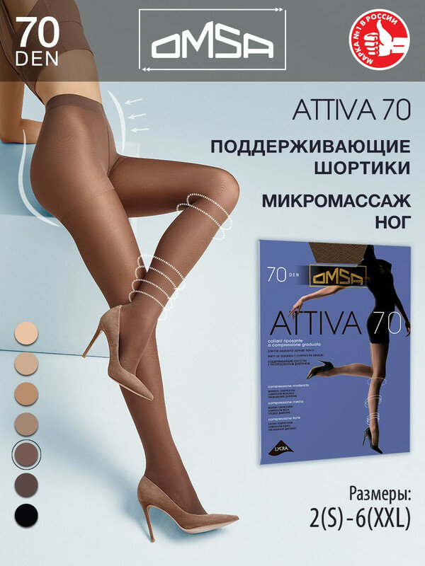Колготки Omsa Attiva, 70 den, размер 2-S, sierra