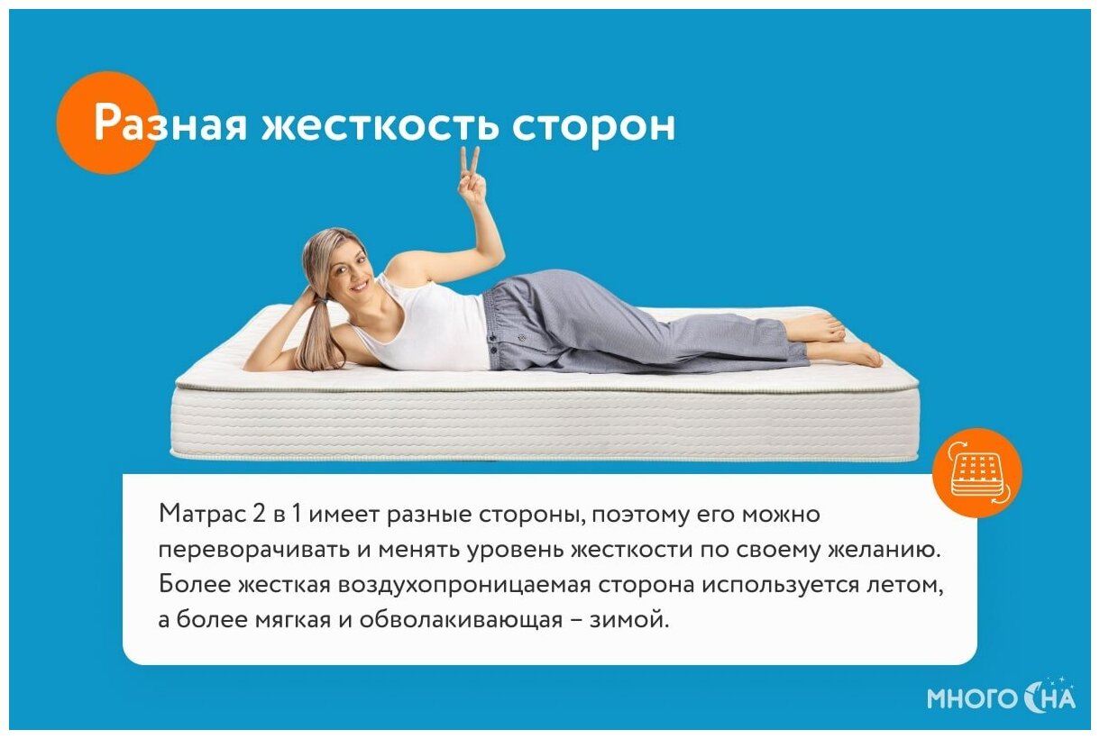 | Плюсы: | Хороший матрас и две стороны отличаются по жесткости друг от друга. |