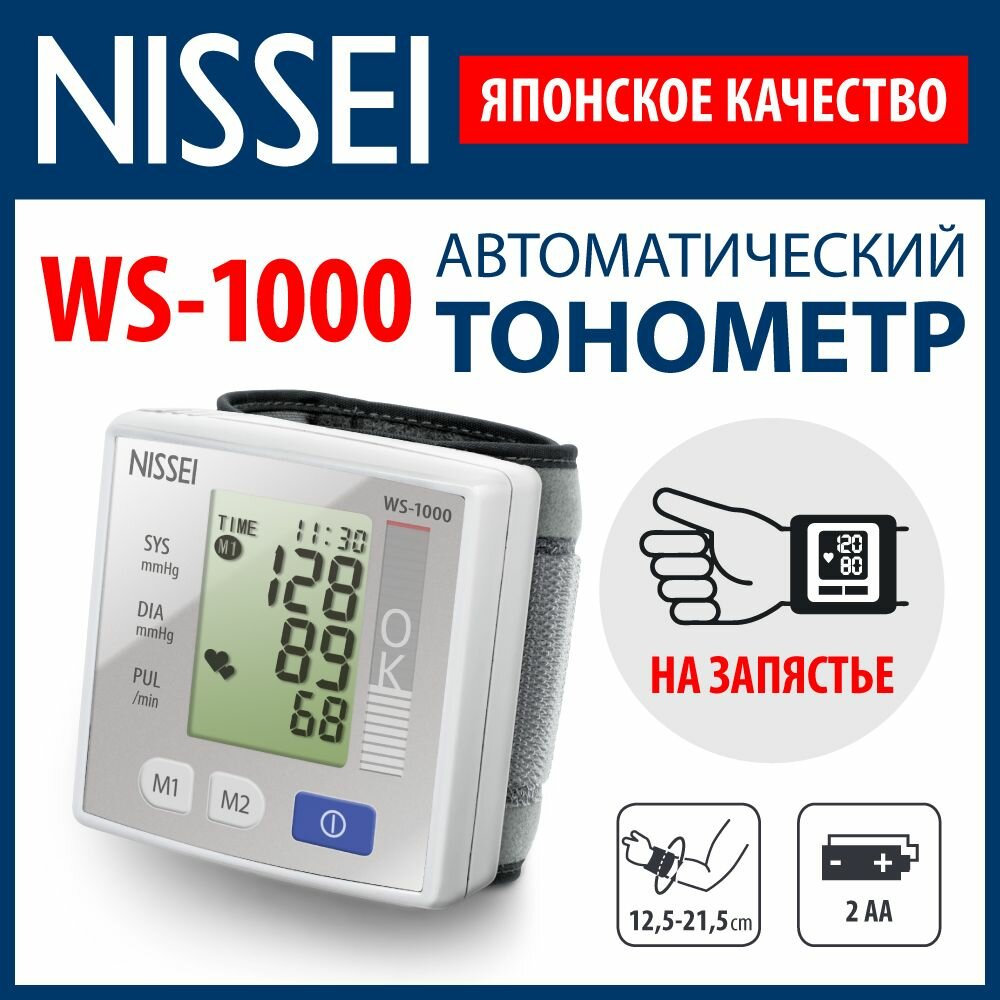 Тонометр Nissei WS-1000 автомат на запястье, 1 шт