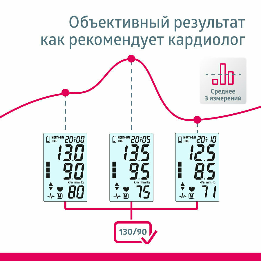 | Плюсы: | На запястье, удобно с подсветкой, дневник на месяц ежедневных измерений. |