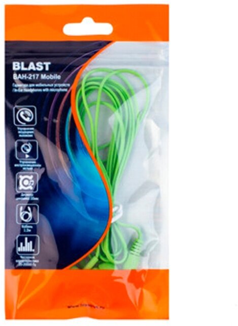 Blast Наушники Blast BAH-217 Mobile, вакуумные, микрофон, 3.5 мм, 1.2 м, зеленые