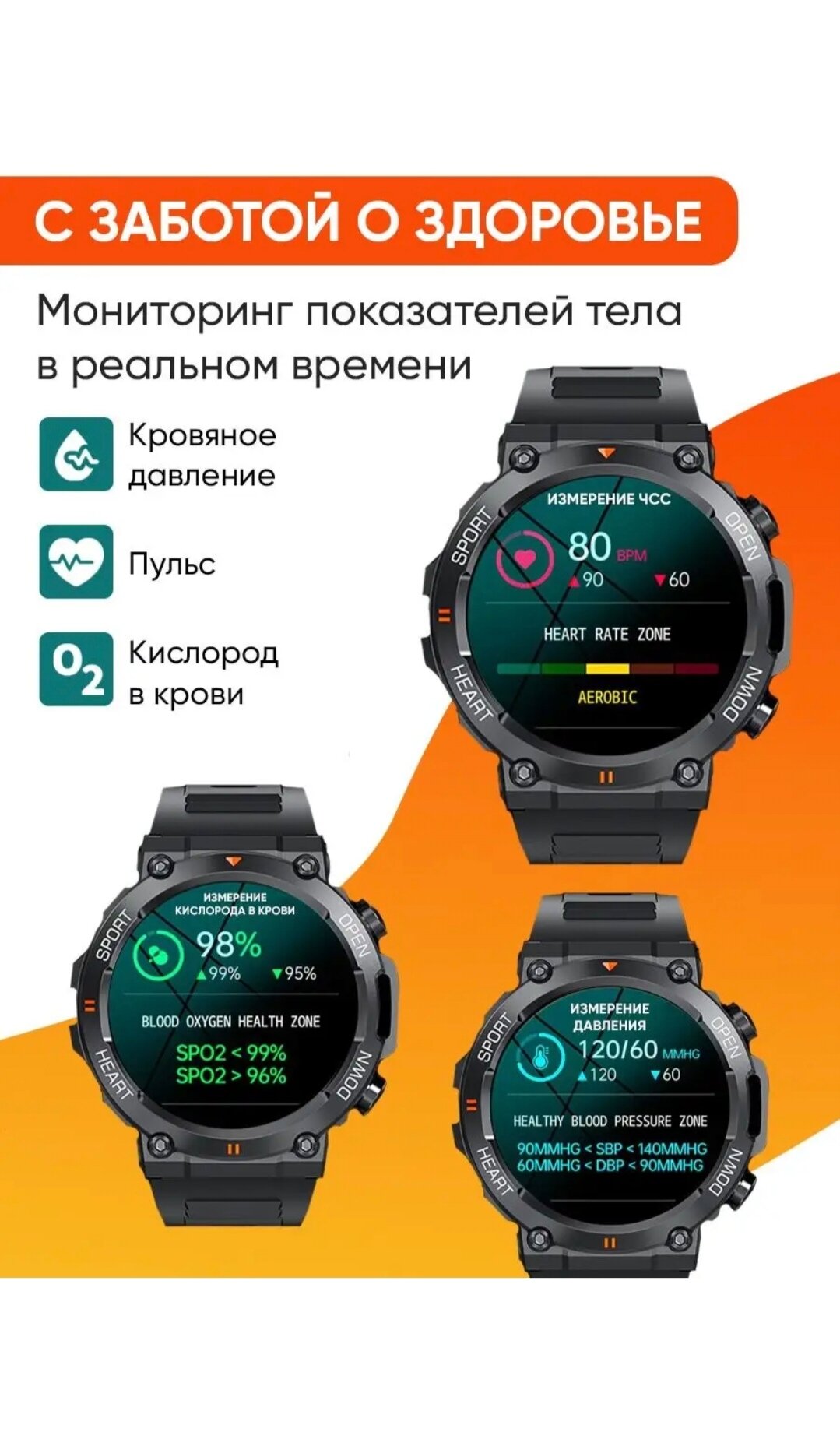 | Функции мониторинга | акселерометр / измерение уровня кислорода в крови / мониторинг сна / мониторинг физической активности / постоянное измерение пульса |