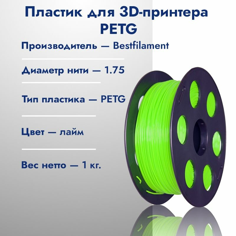 СохранитьPETG Лайм 1000 гр. 1.75 мм пластик Bestfilament для 3D-принтера интересное:
