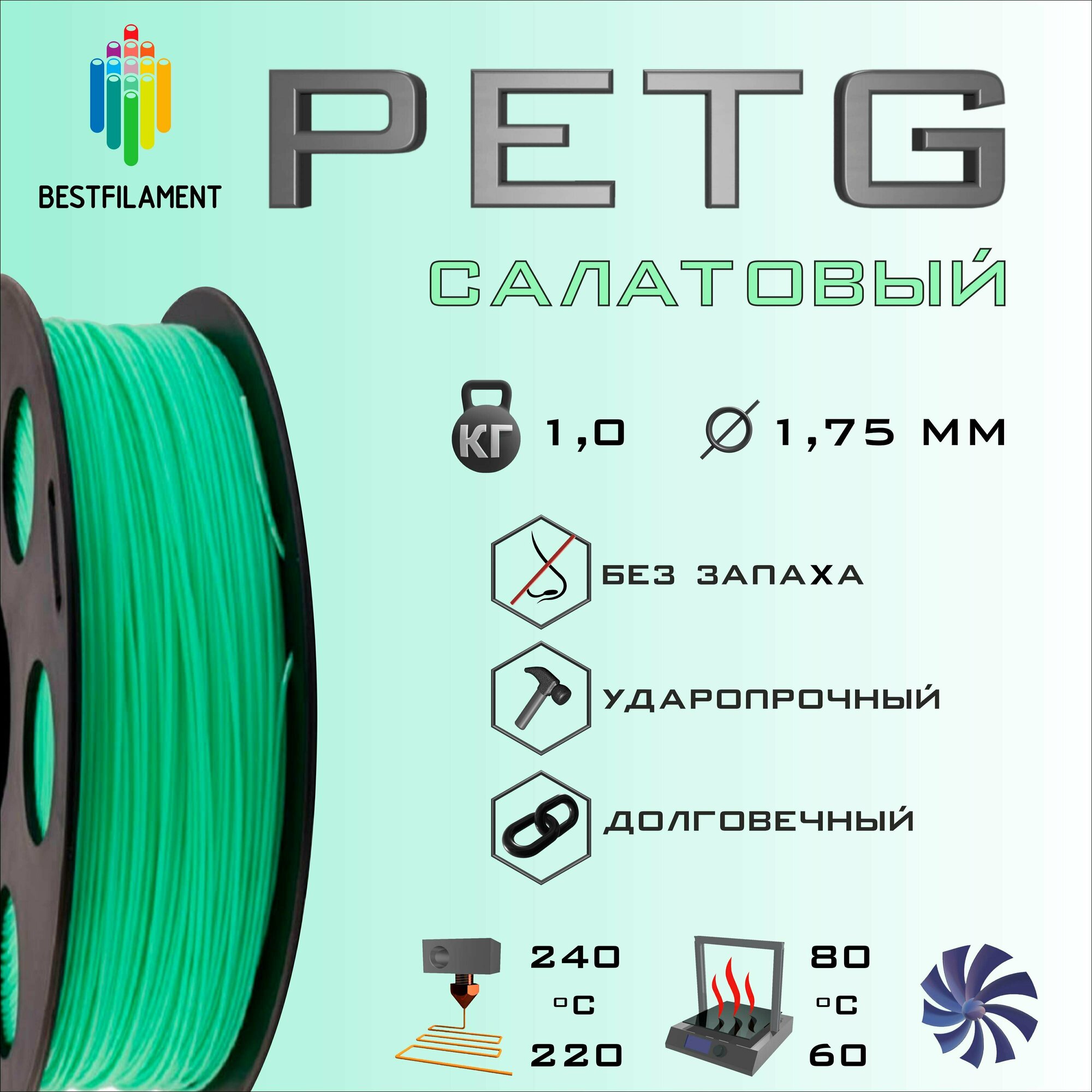 Пластик PETG для 3D печати Bestfilament зеленый, 1.75мм, 1 кг